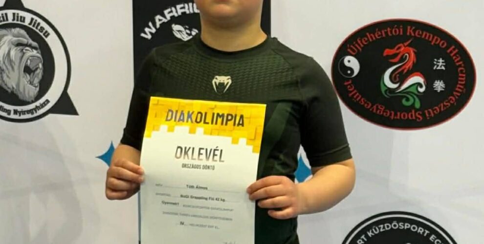 Tóth Álmos 2.b osztályos tanulónk 2026. április 11-én a Budapesten megrendezett Grappling Diákolimpia országos döntőjében kiváló versenyzéssel 4. helyezést ért el a korcsoportjában. Álmos hétéves …