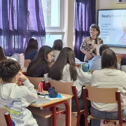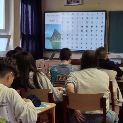 A „Deutsch im Fokus” címmel megvalósult ország- és népismereti projekten intézményünk 6-7. évfolyamos tanulói vettek részt. A hangulatos program épített a gyerekek előzetes tudására és kreativitására. A tanulók sok új ismeretet szereztek a német nyelvterület országairól, elsősorban Németország történelméről, földrajzáról és kulturális örökségéről. A rendezvényt változatosabbá, színesebbé tette a magyarországi német, valamint a szatmári sváb néphagyomány néhány elemének megjelenése.