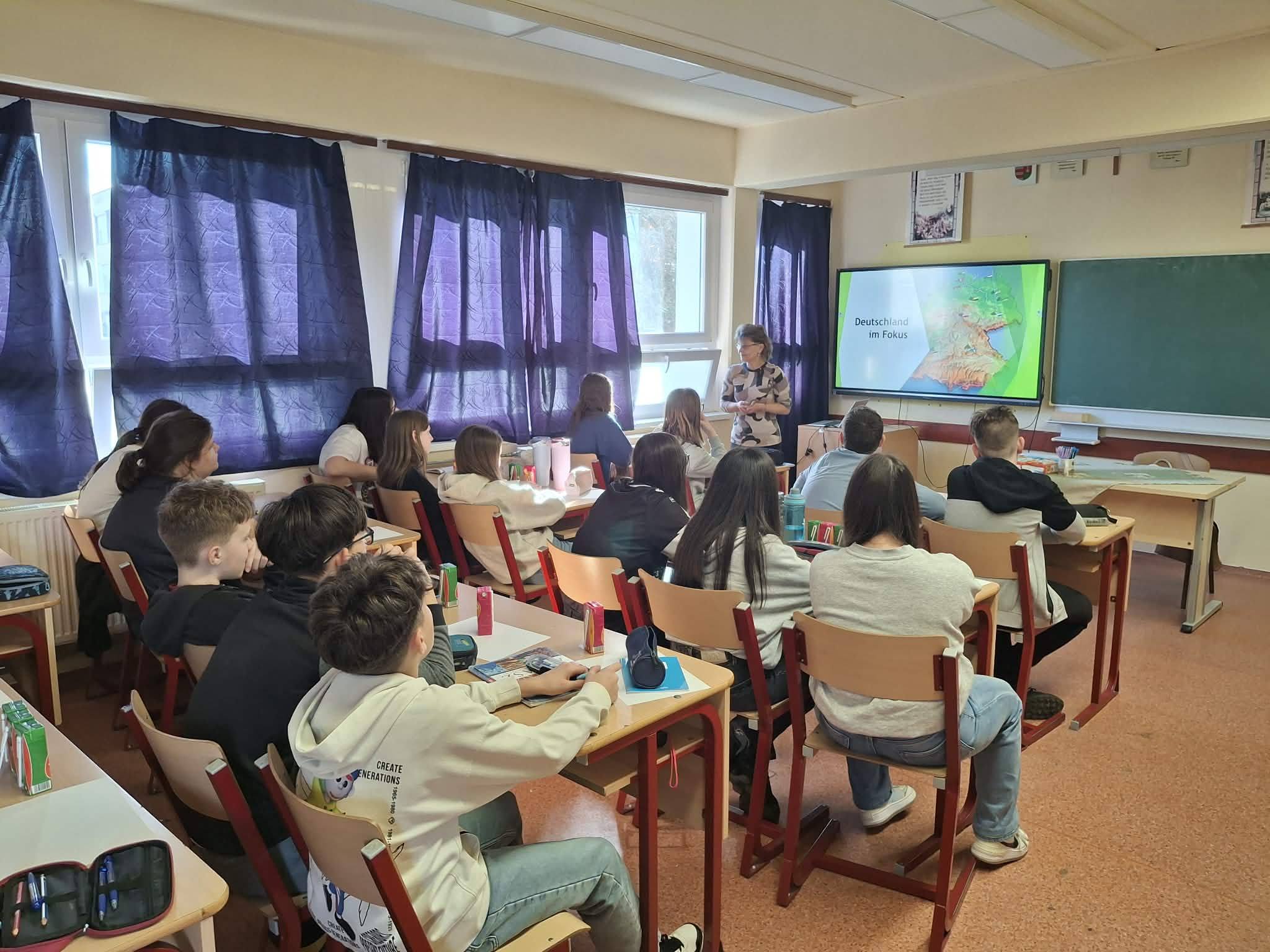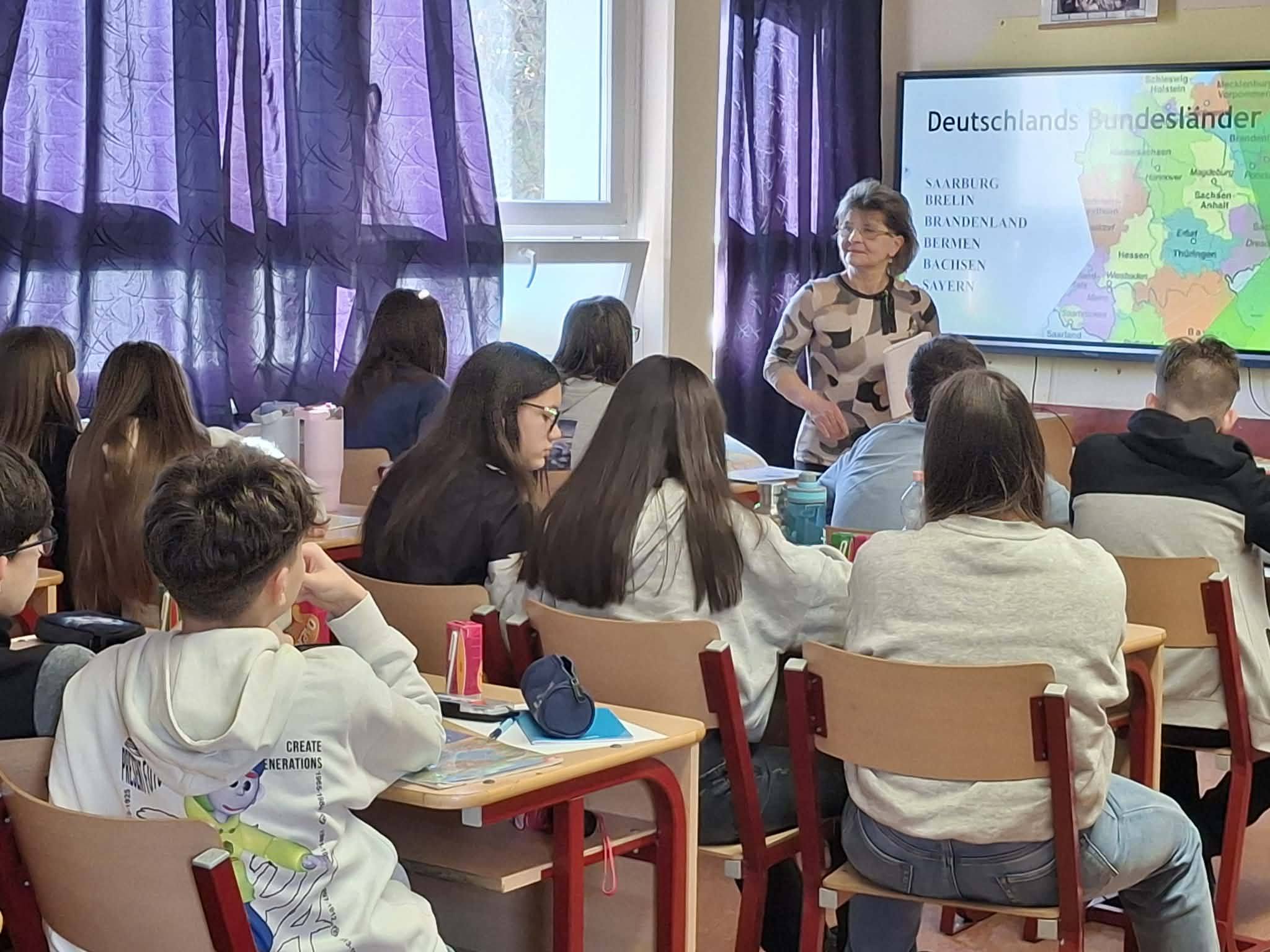 A „Deutsch im Fokus” címmel megvalósult ország- és népismereti projekten intézményünk 6-7. évfolyamos tanulói vettek részt. A hangulatos program épített a gyerekek előzetes tudására és kreativitására. A tanulók sok új ismeretet szereztek a német nyelvterület országairól, elsősorban Németország történelméről, földrajzáról és kulturális örökségéről. A rendezvényt változatosabbá, színesebbé tette a magyarországi német, valamint a szatmári sváb néphagyomány néhány elemének megjelenése.
