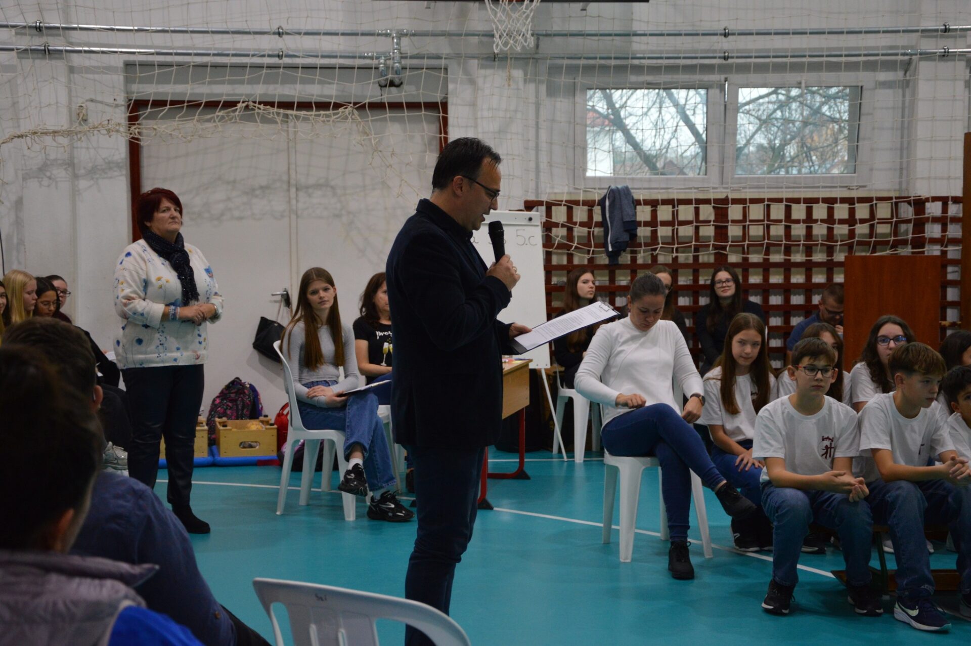 Csapos Zsolt főigazgató úr köszöntötte a versenyzőket, majd átadta a jól megérdemelt jutalmakat.