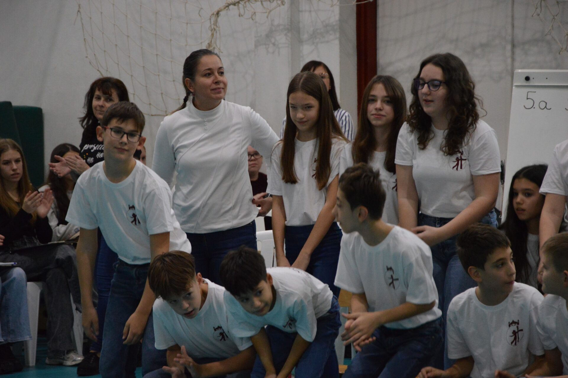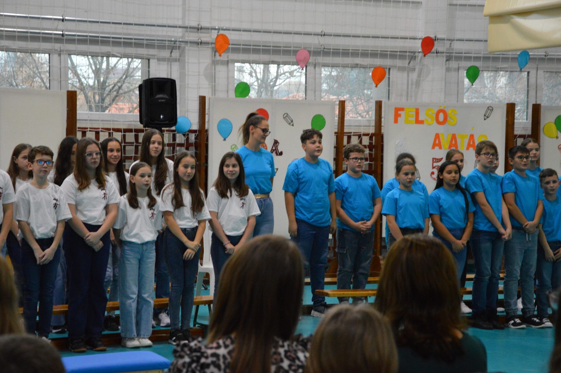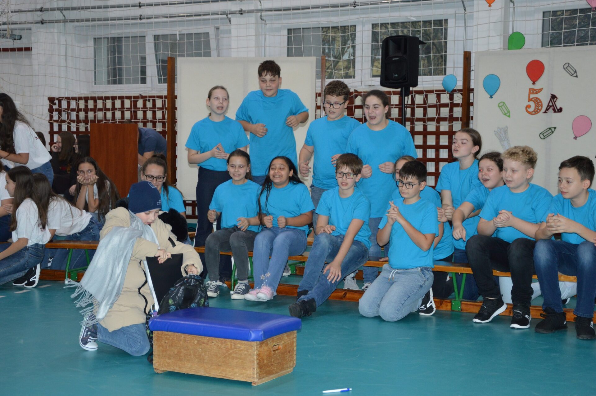 Múlt pénteken igazi ünnepi hangulat költözött a tornaterembe, ahol az ötödikesek felsőssé avatása zajlott, tele nevetéssel és vidám kihívásokkal! Tanáraikat kellett felismerni régi gyerekkori fotókról, labdával a homlokuk között táncoltak, villámgyorsan felöltöztek és bepakolták a táskát,„leckét írtak”, mintha iskolába indulnának,