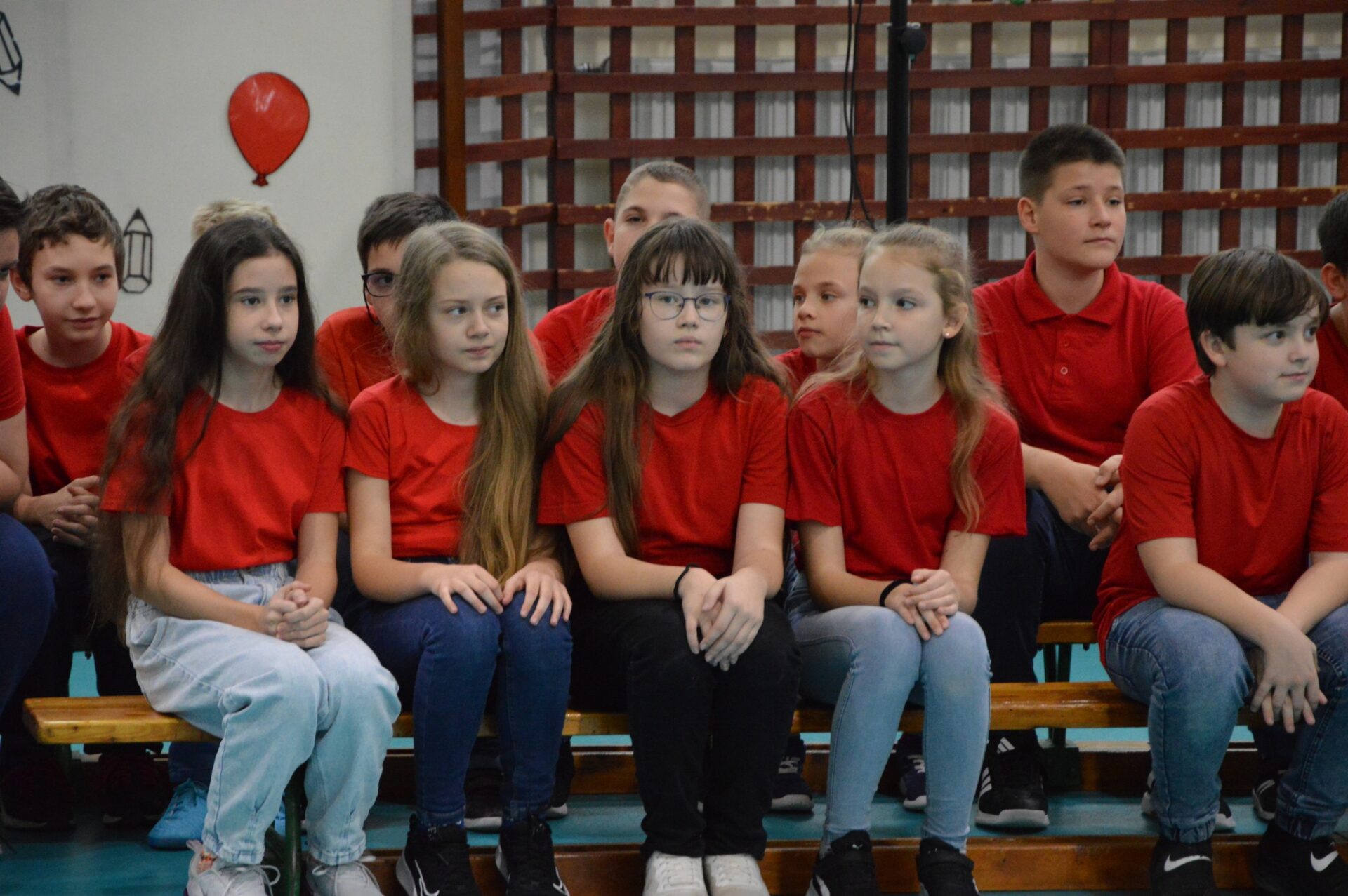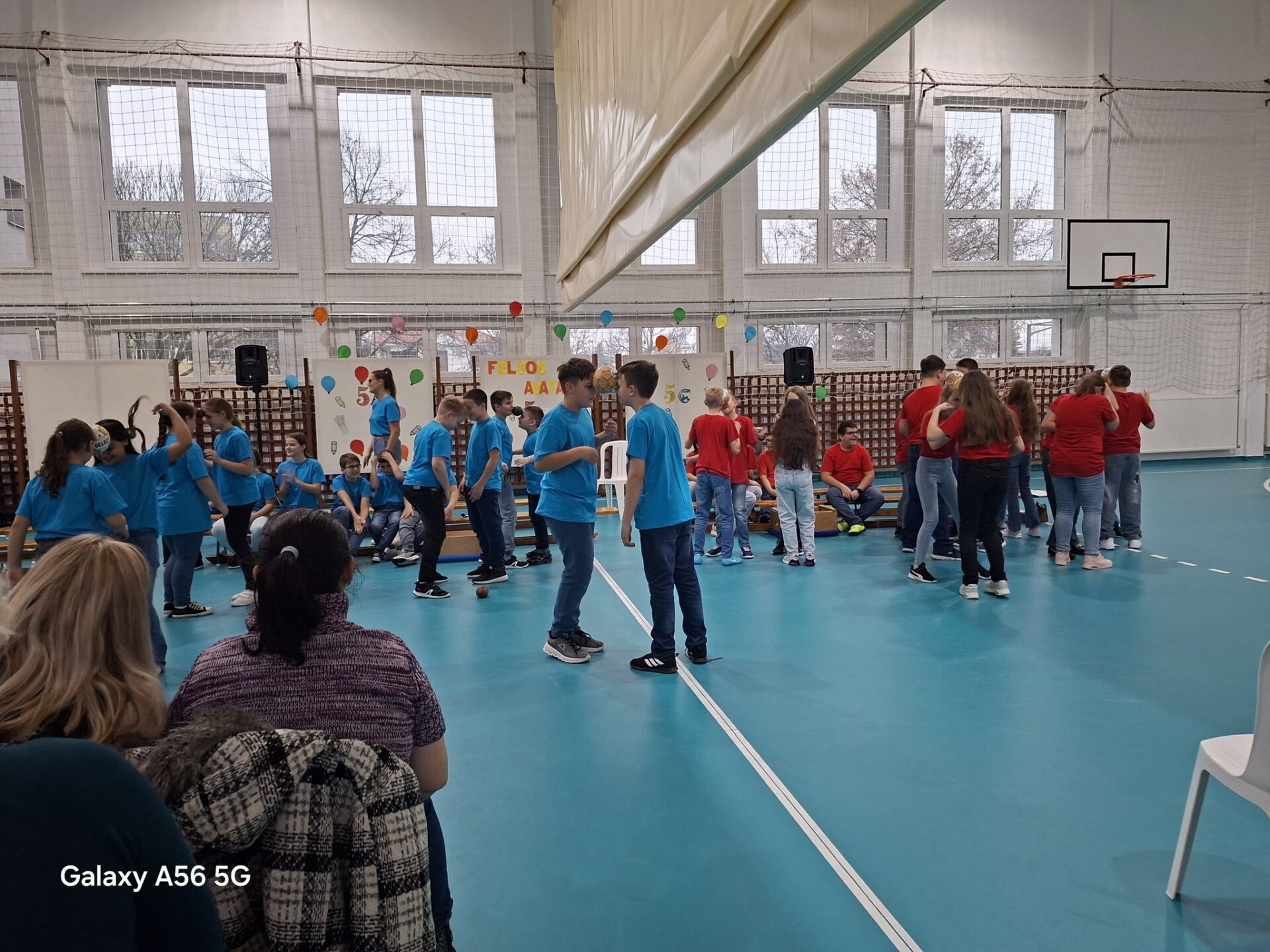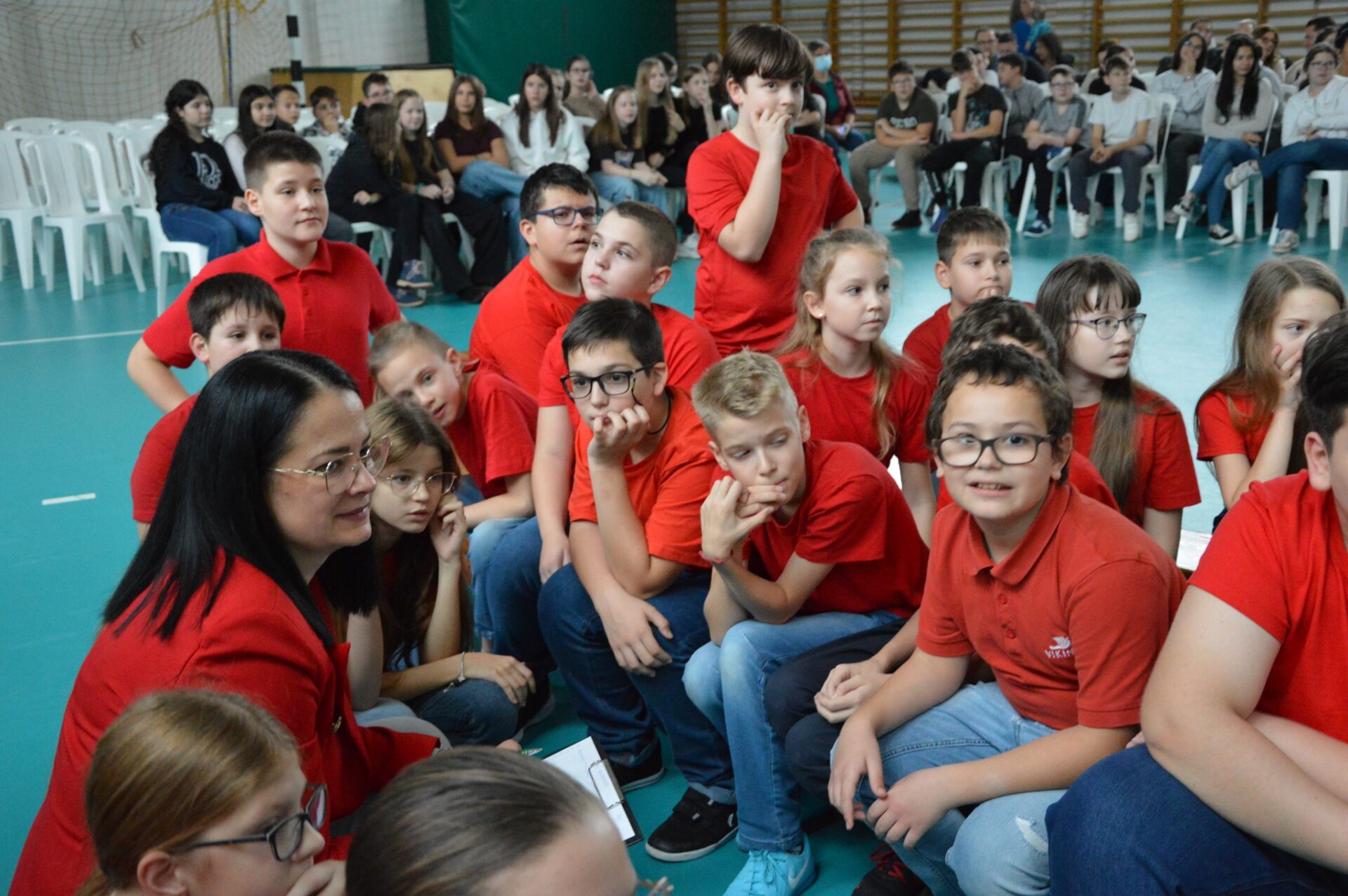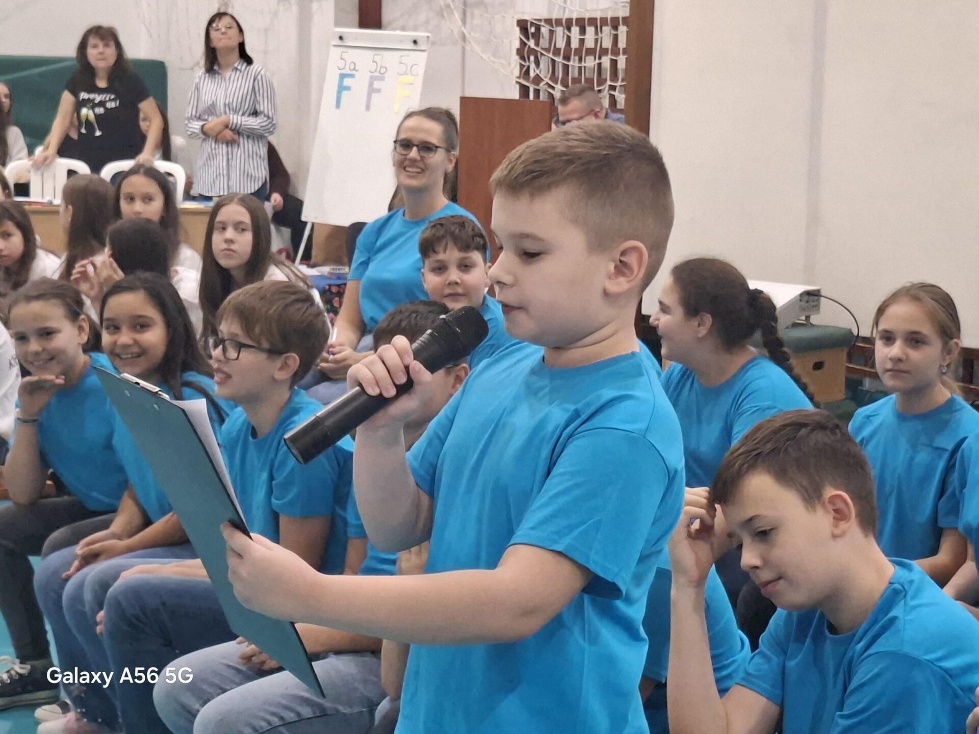 Múlt pénteken igazi ünnepi hangulat költözött a tornaterembe, ahol az ötödikesek felsőssé avatása zajlott, tele nevetéssel és vidám kihívásokkal! Tanáraikat kellett felismerni régi gyerekkori fotókról, labdával a homlokuk között táncoltak, villámgyorsan felöltöztek és bepakolták a táskát,„leckét írtak”, mintha iskolába indulnának,