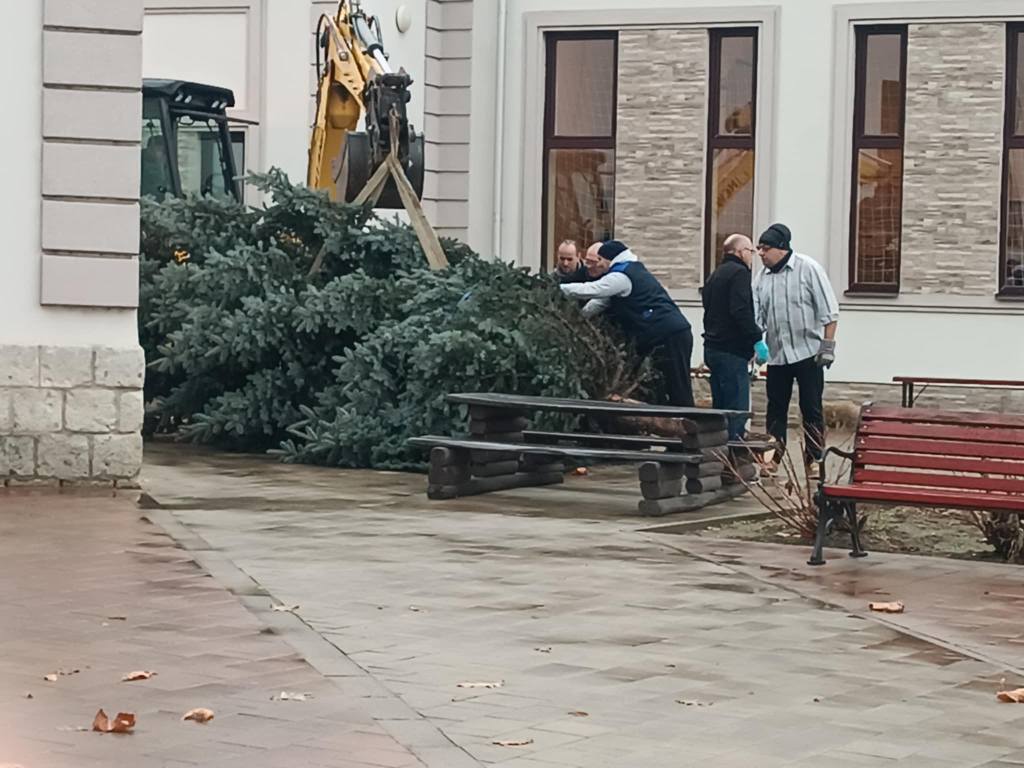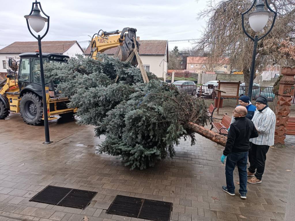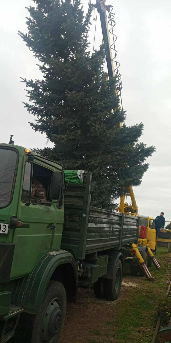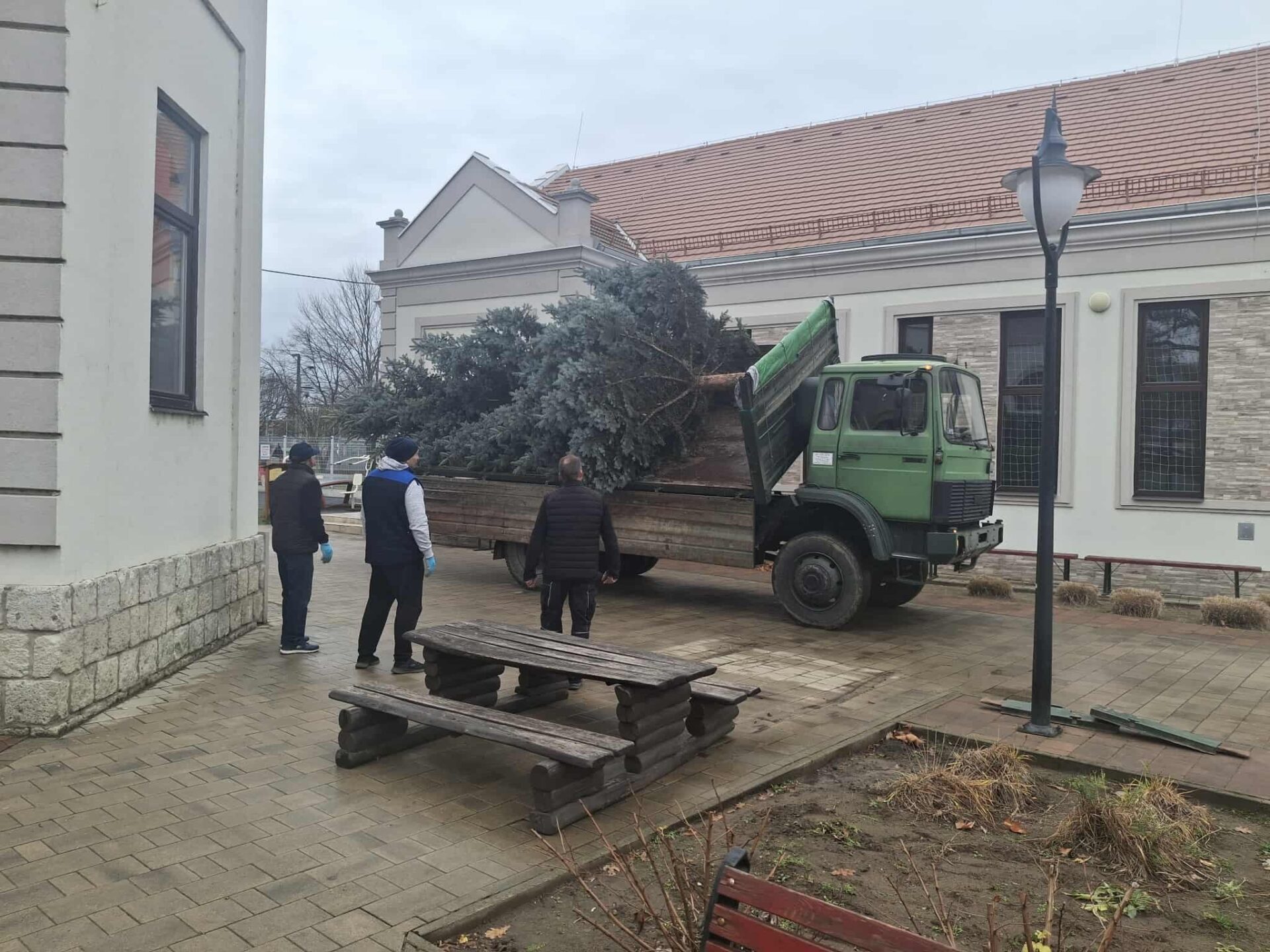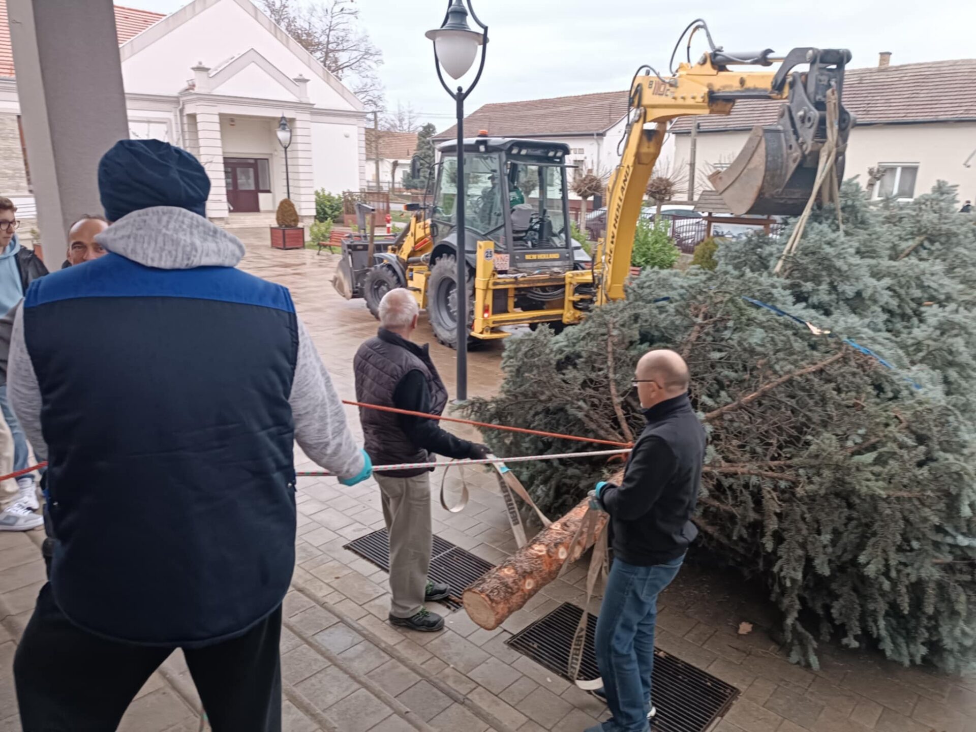 A fenyőfa kivágásában, szállításában és felállításában intézményünk karbantartói, pedagógusai és a 8. osztályos fiúk segítettek.