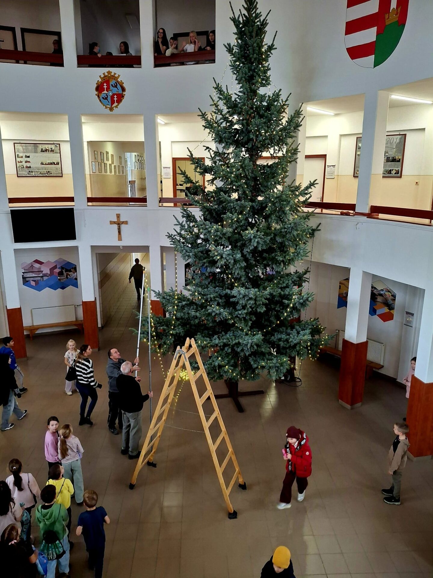 Húztuk, vontuk, emeltük – és közben mindenkit magával ragadott a közös munka öröme. Már most érezzük, ebből a csodás fából rengeteg élmény és ünnepi pillanat születik majd!Az idei karácsonyfa valódi közösségi összefogás eredményeként díszíti az aulát!