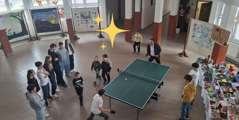Főigazgató úr ma bebizonyította, hogy nemcsak az iskolát, de a pingponglabdát is kézben tartja! A szünetben a gyerekekkel vívott pingpong csatát, ahol kiderült, a stratégiai tervezésnél csak a fonákja erősebb.